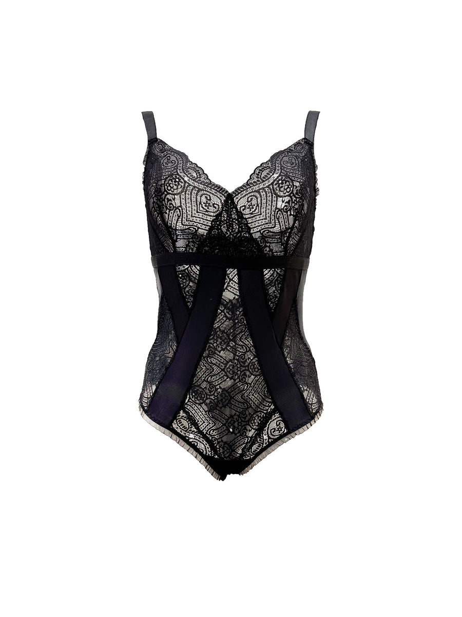 The Dark Light Entrap Bodysuit is designed to contour and support while delivering a confidently sensual look. Made from stretch control knit and stretch lace paneling, this bodysuit sculpts the body while maintaining a soft, comfortable feel.