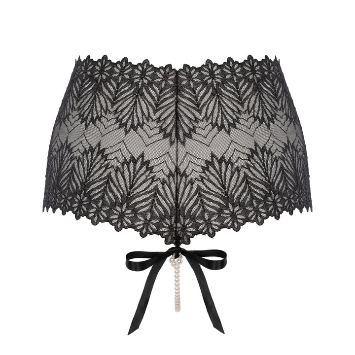 Discover the seductive power of BRACLI's newest Destinos collection! Crafted with delicate lace, the high-rise DESTINOS PANTY uses a strategically placed necklace of pearls to massage and stimulate your most sensitive areas while adding a touch of elegance and distinction. An added bow detail tastefully invites. Experience the pleasure! Choose from ivory pearls or black pearls, which best suits your style?