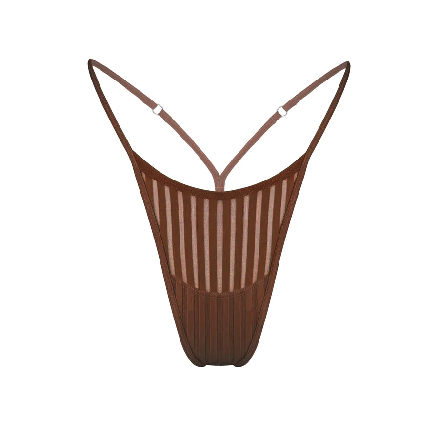 Our online exclusive has minimal coverage with maximum visual appeal! Our Vertigo Micro-G thong is designed to be silhouette enhancing. Pairs with our Vertigo V Neck Bralette or Vertigo Bralette