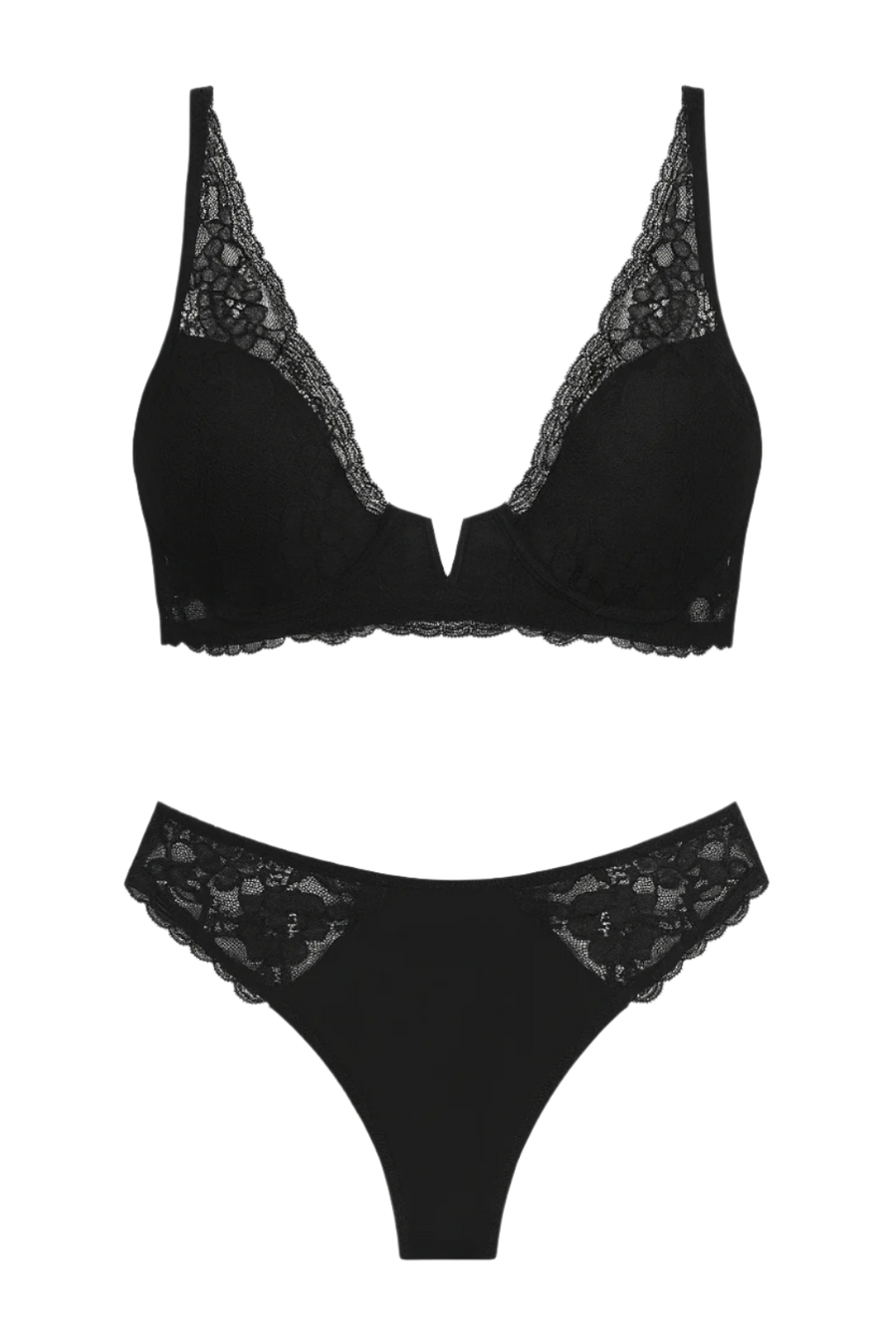 • Lace: 65% Nylon 26% Polyester 9% Elastane Fabric: 86% Nylon 14% Elastane Cup Lining: 100% Polyester