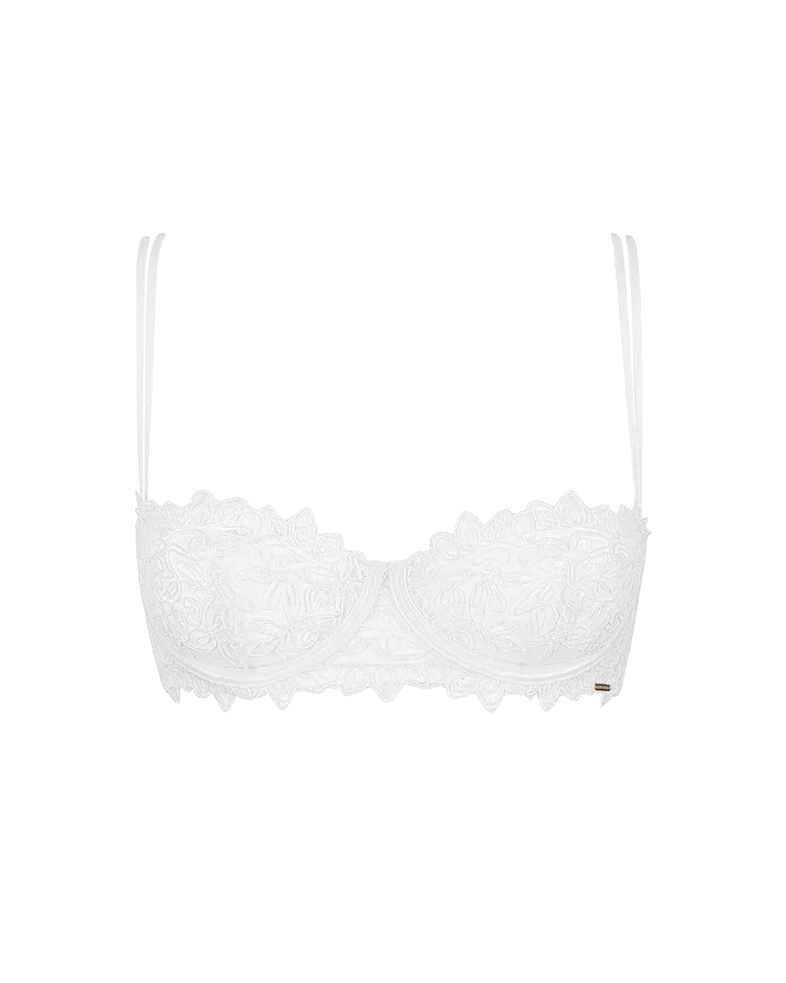 Elevate your lingerie drawer with this gorgeous balcony bra, designed with sheer mesh and beautifully flowing abstract embroidery. The sheer cups offer a sensual glimpse of skin while providing a naturally lifted shape. Delicate embroidery enhances the sophisticated silhouette, making it a standout piece in any collection.
